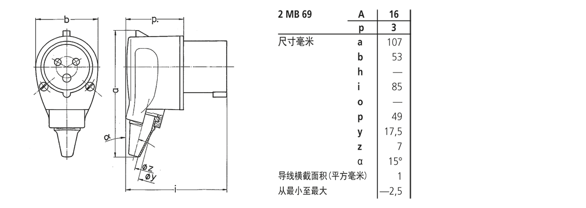 曼奈柯斯CEE倾斜插头,适用于16 A,带有经过验证的螺钉接触。特别适用于露营领域。