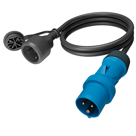 曼奈柯斯适配器电缆,带SCHUKO连接器和CEE插头,适用于16 A。特别适用于露营领域。