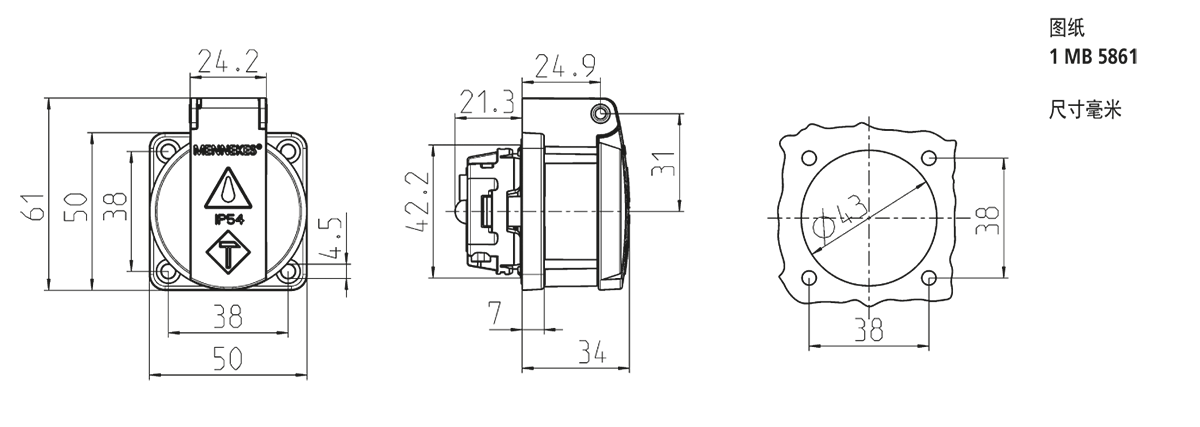 带 3 个螺钉接线端子,适用于1.5 – 2.5 mm² 电缆