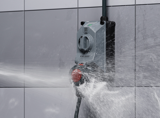 根据型号不同,DUOi-机械联锁明装插座分别满足IP44或IP67 / IP69防护等级,配备发泡密封件——它可以阻挡微小异物、各个方向的溅水或灰尘和浸水。