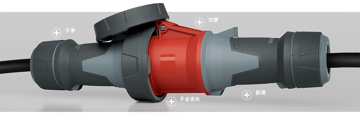 我们的插头和连接器上集成了开启辅助装置,使您可以轻松打开铰接盖并将其固定在该位置。 前部和应力消除装置之间还设计了一个旋转锁,可以快速牢固地锁定,无需拧紧任何螺钉。 在63 A和125 A规格(具有IP67防护等级)的插头和连接器中,连接器铰接盖和插头前部的密封件采用模压工艺,不存在丢失风险。