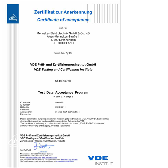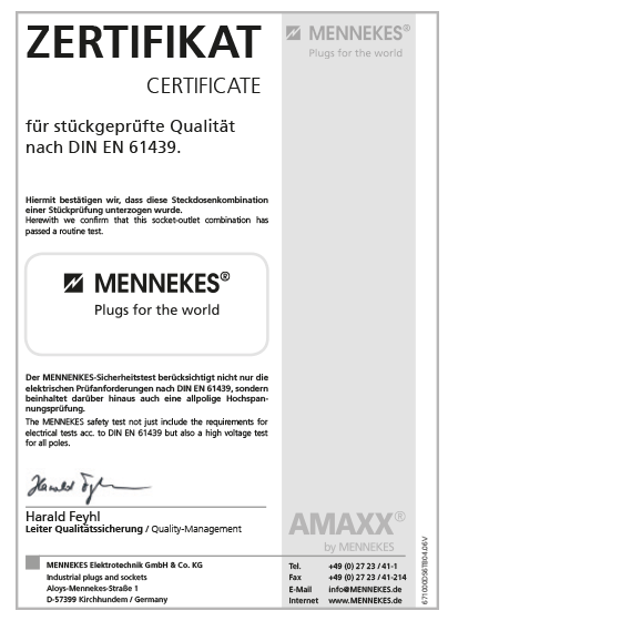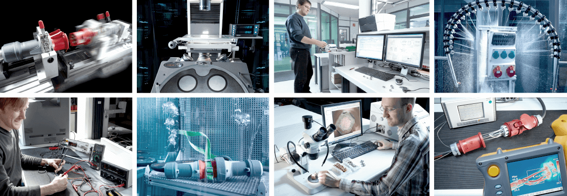 我们通过自己的测试实验室确保产品的高品质标准。该实验室已获批准,将用于我们的产品测试,以便获得VDE等认证机构依照DIN EN 60309分发的测试标记。