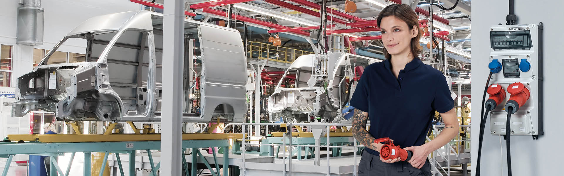 我们的壁挂式 AMAXX® 组合插座箱以及悬挂式配电器可为大型生产车间全面供电。除坚固耐用的插头和连接器以外,我们的 PowerTOP Xtra 系列产品也能充分满足汽车行业的高要求。所有 MENNEKES 产品解决方案都配备久经考验的连接技术 ErgoCONTACT、SafeCONTACT 或 TwinCONTACT,它们可以快速方便地安装和保养。