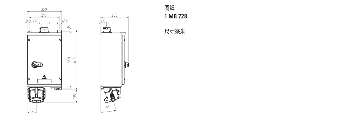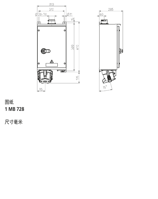 顶部有20毫米至70毫米电缆直径的入口插座,底部有盲板法兰