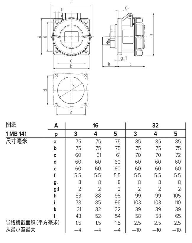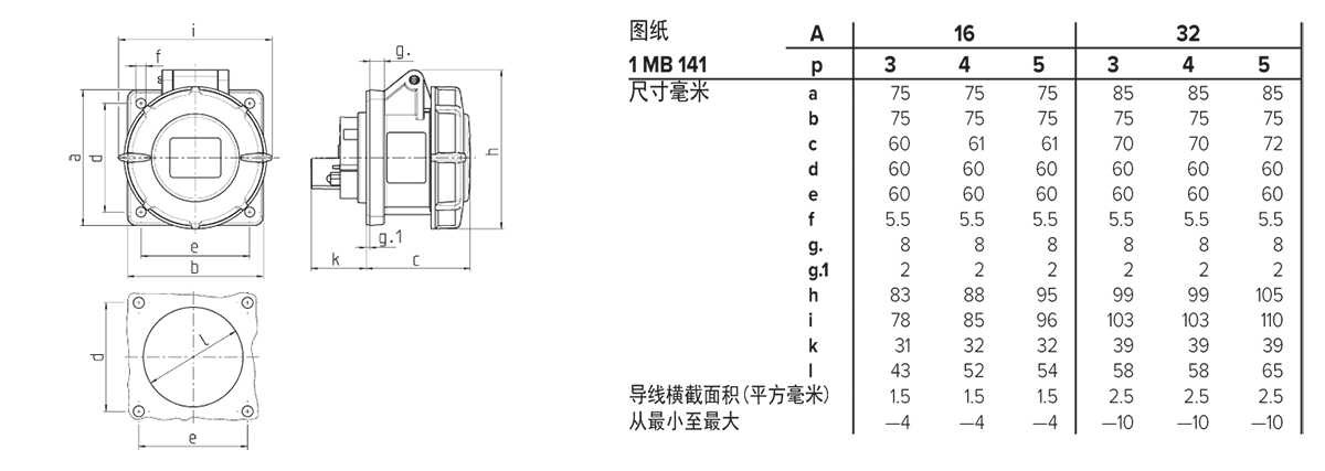 带配件,与法兰一起可用于安装产品组 1046、1056、1134 和 1136 的 16 A 或 32 A 面板式插座