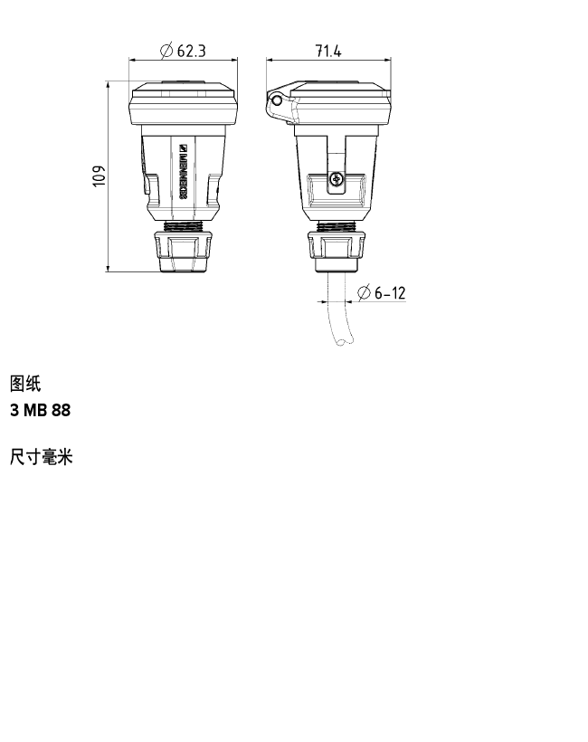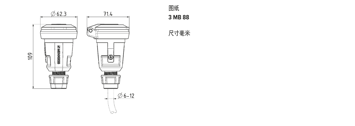 • 适用于电缆(最大规格至3×2.5 mm²,型号H07RN-F)的大接线空间缆